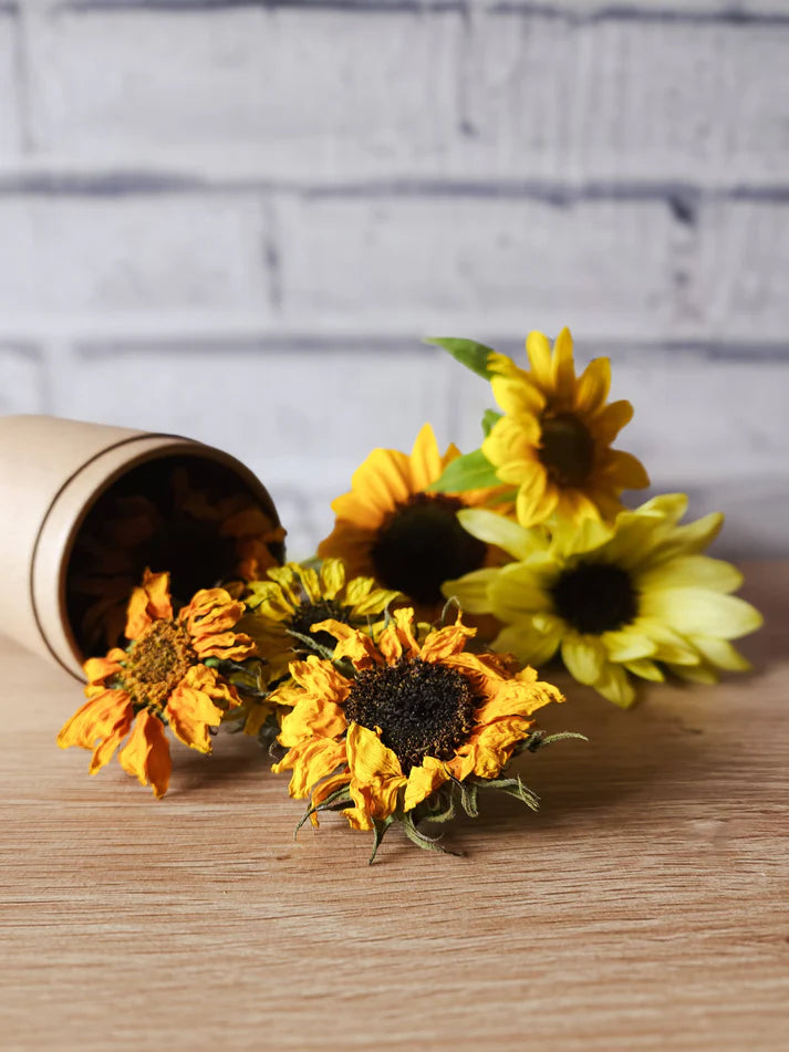 Dried sunflower heads bring a delightful touch to any special occasion, like a happy gotcha day treat or a special birthday cake. These beautiful sunflower heads not only enhance the overall aesthetics of any dish, but they also go well with many different meals.