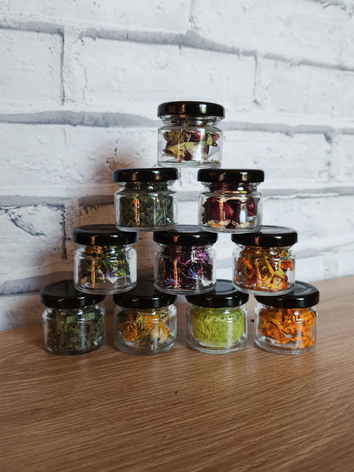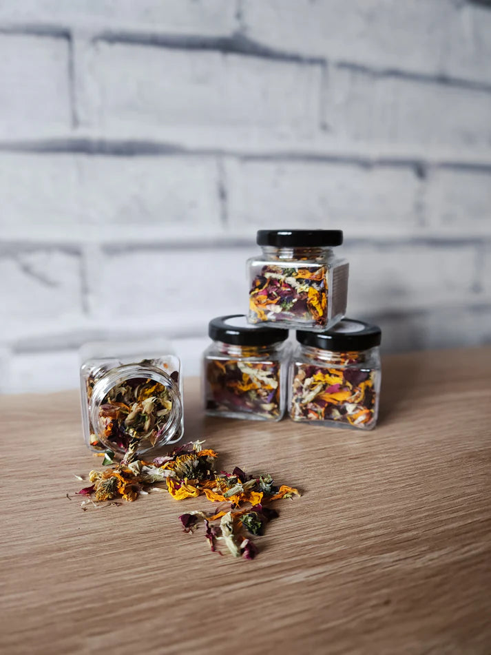 At the Meadow, we provide botanicals in sustainable glass jars, cardboard tubes, and eco-friendly pouches. For optimal freshness, use our airtight glass jars to maintain aroma, flavour, and colour. If you'd like to reuse jars, try our biodegradable pouches, certified home compostable under Australian and European standards. The pouches reduce product weight, lowering emissions and postage costs, while offering a chance to repurpose jars, plus we'll include a free label of that botanical for you to add to your container.