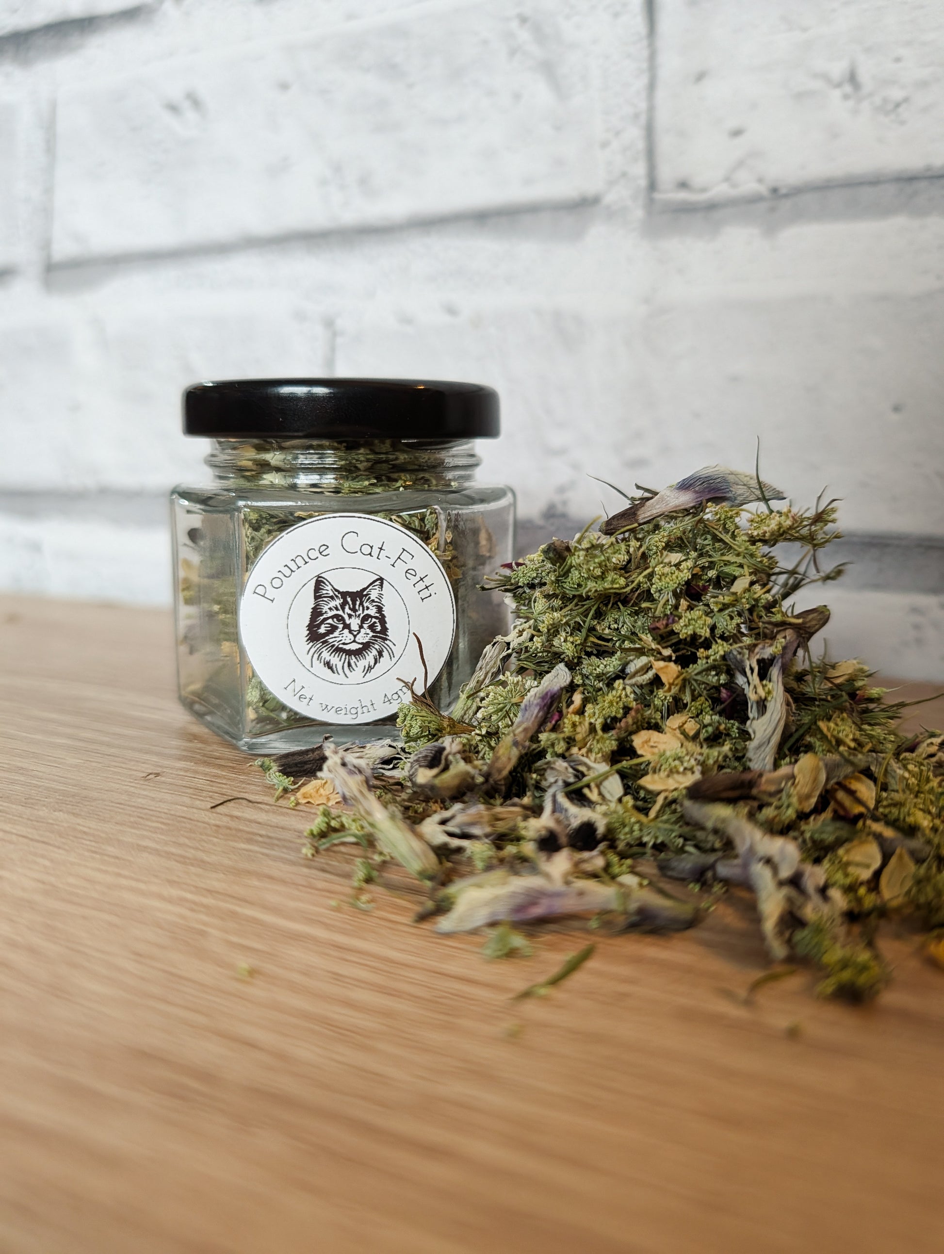 Pounce Cat-fetti The ultimate blend for cats who like to pounce and tumble, Carrot Flowers | Daucus carota Broad Bean Flowers | Vicia faba Alyssum | Lobularia maritima White Rose | Rosa spp. Net weight 4gm